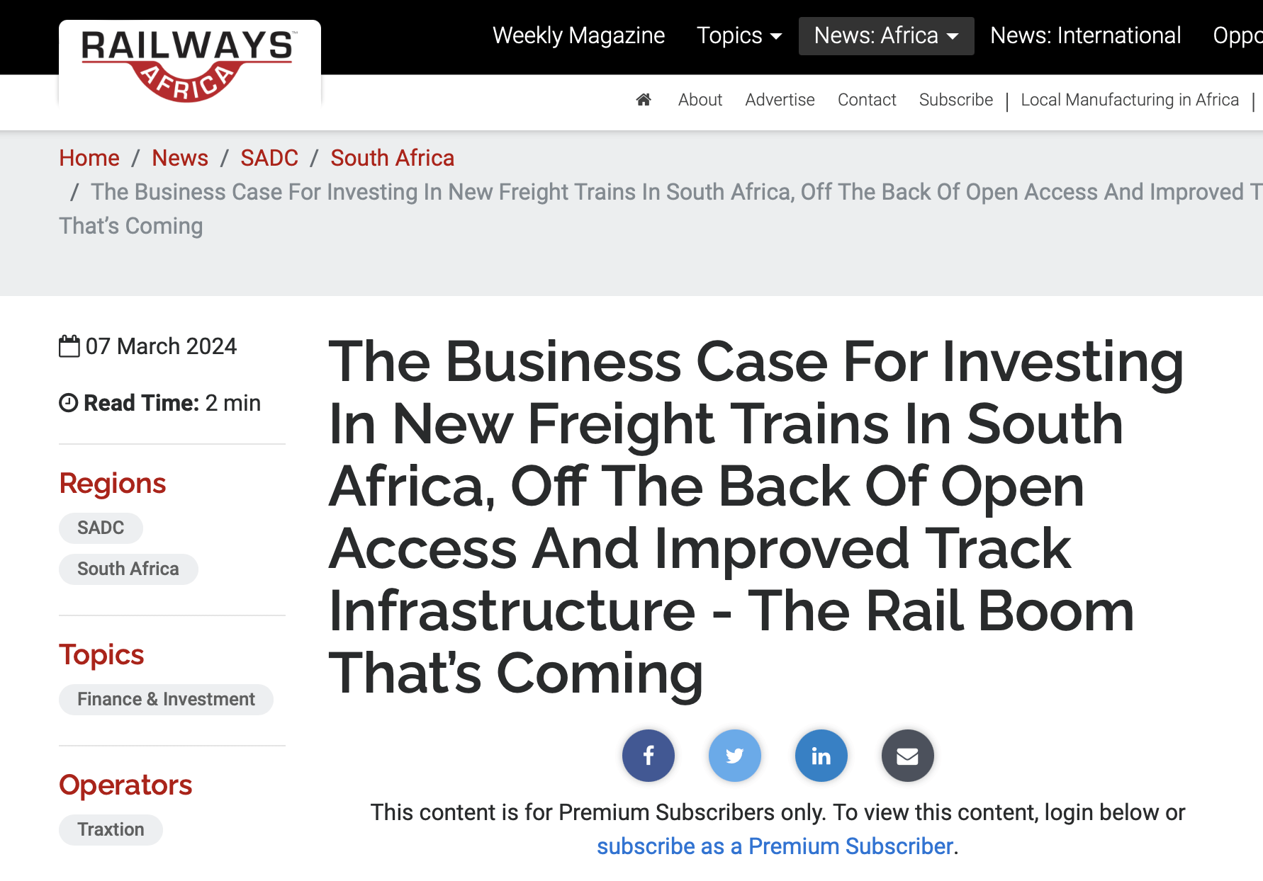 The Business Case For Investing In New Freight Trains In South Africa, Off The Back Of Open Access And Improved Track Infrastructure – The Rail Boom That’s Coming